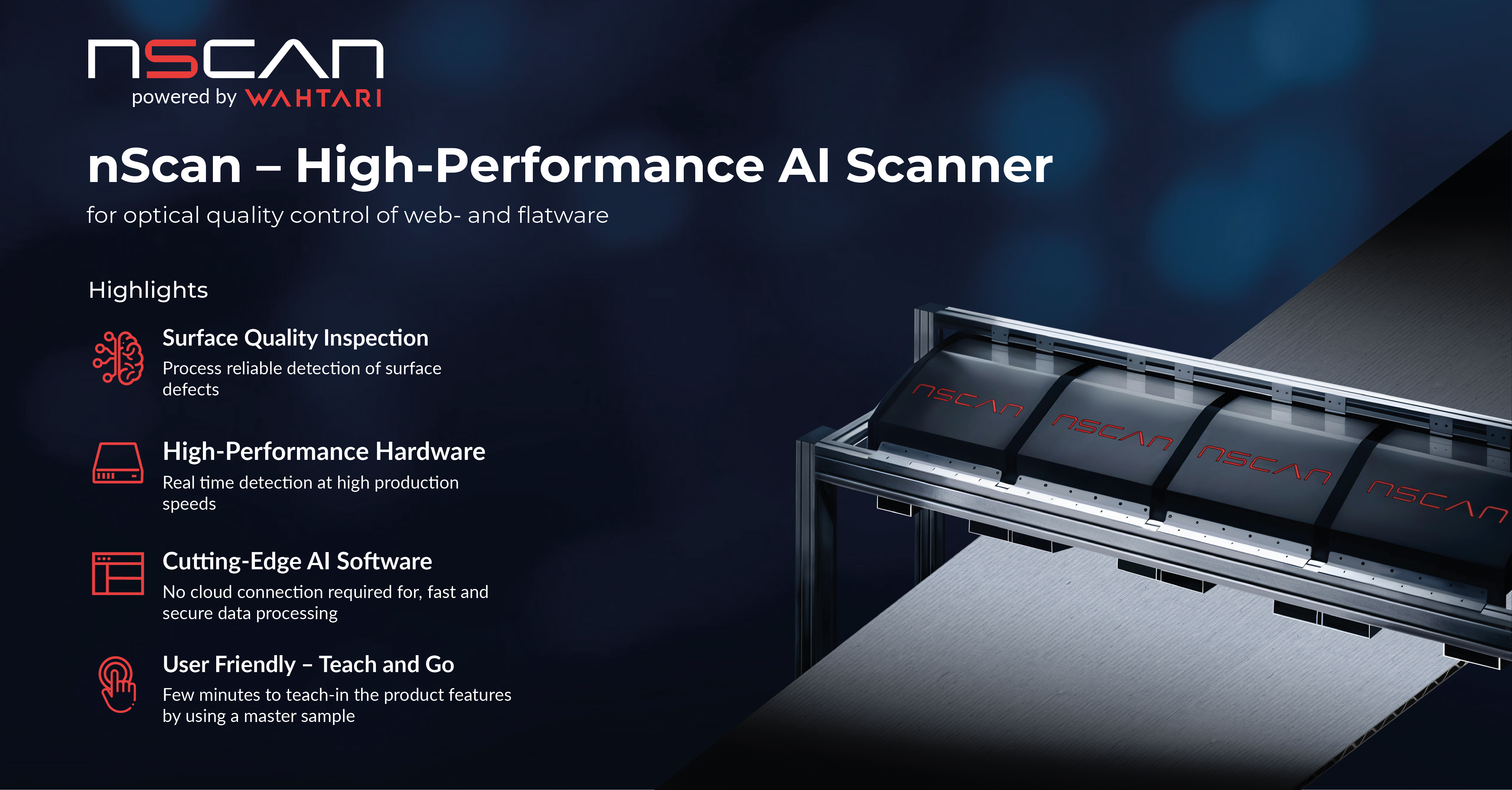 The fully automated ๐ป๐ฆ๐ฐ๐ฎ๐ป visual inspection system from Wahtari is the all-in-one solution for both slow- and high-speed processing of rolled or flat materials.