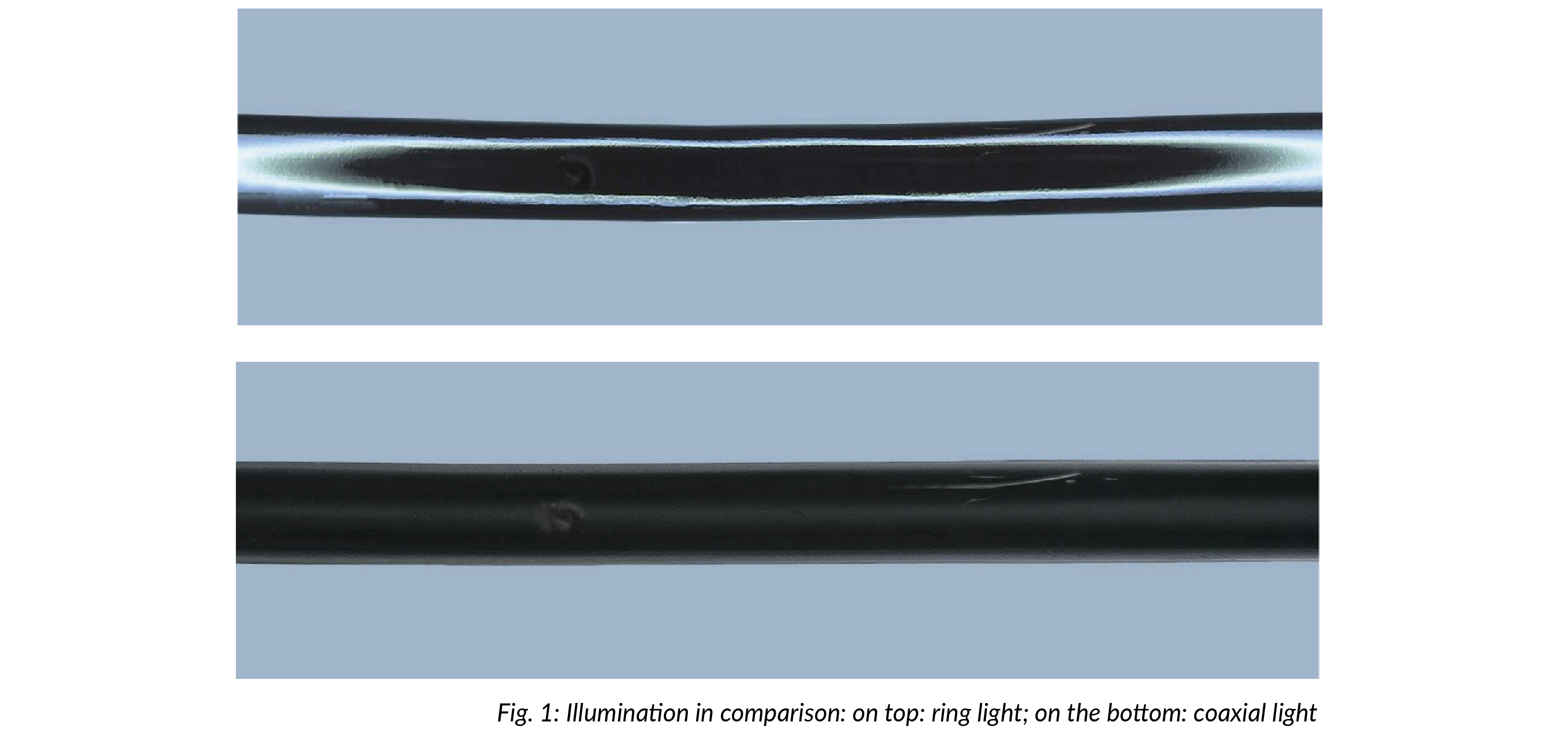 Finally, the uniform illumination of the test object is important, especially to image three-dimensional defects such as cracks, scratches, dents or bubbles. Defects or desired test features must be visualized with sufficient contrast and reflections and mirroring of the test object must be avoided.