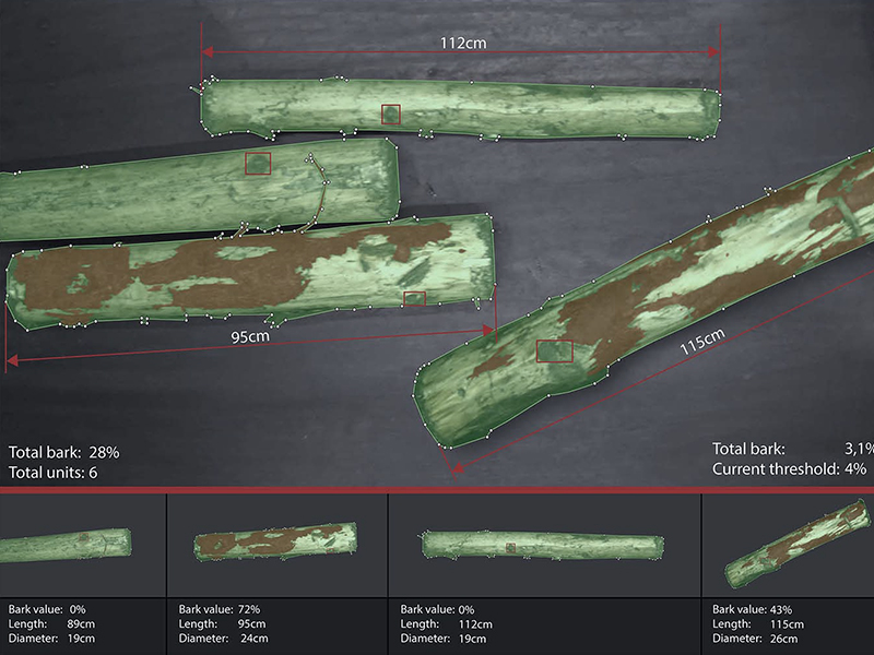 The automatic detection of bark residues on tree logs! For this challenging task, we specifically trained and adapted our AI-based camera -Wahtari nCam Plus. KPIs of Wahtari nWood inspection system:
