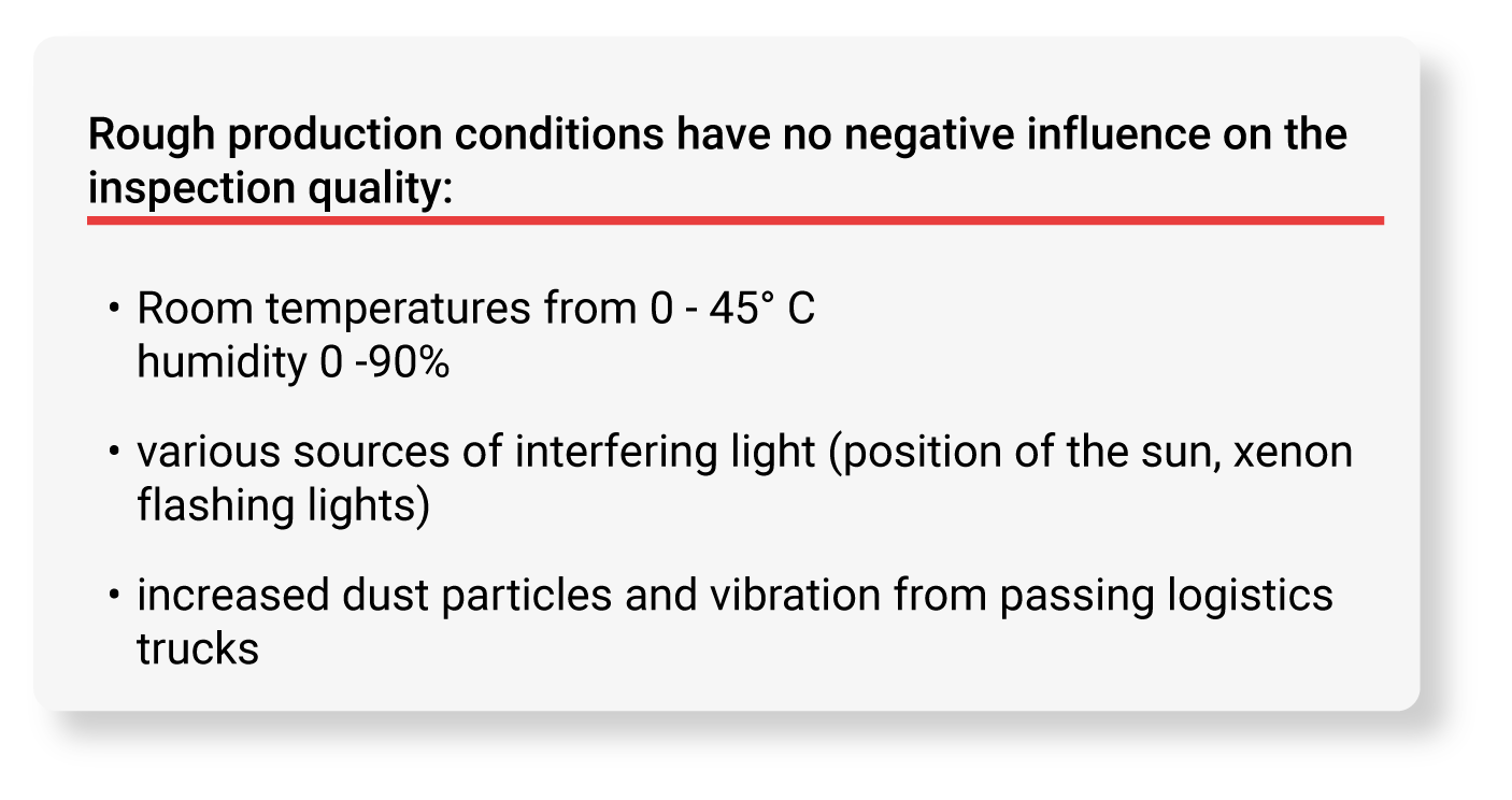 Fast production speeds require a high frame rate (e.g. 1500 per second) to ensure gapless detection. However, the higher the frame rate, the shorter the exposure time. Therefore, images quickly appear too dark if the lighting is not powerful enough.